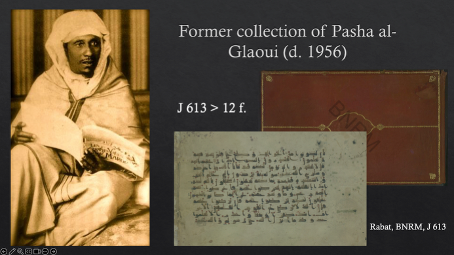 - Un groupe de feuillets appartenait à la collection d’al-Tahāmī al-Glaoui, pacha de Marrakech au début du XXᵉ siècle, et est maintenant conservé à la Bibliothèque nationale du Maroc à Rabat.